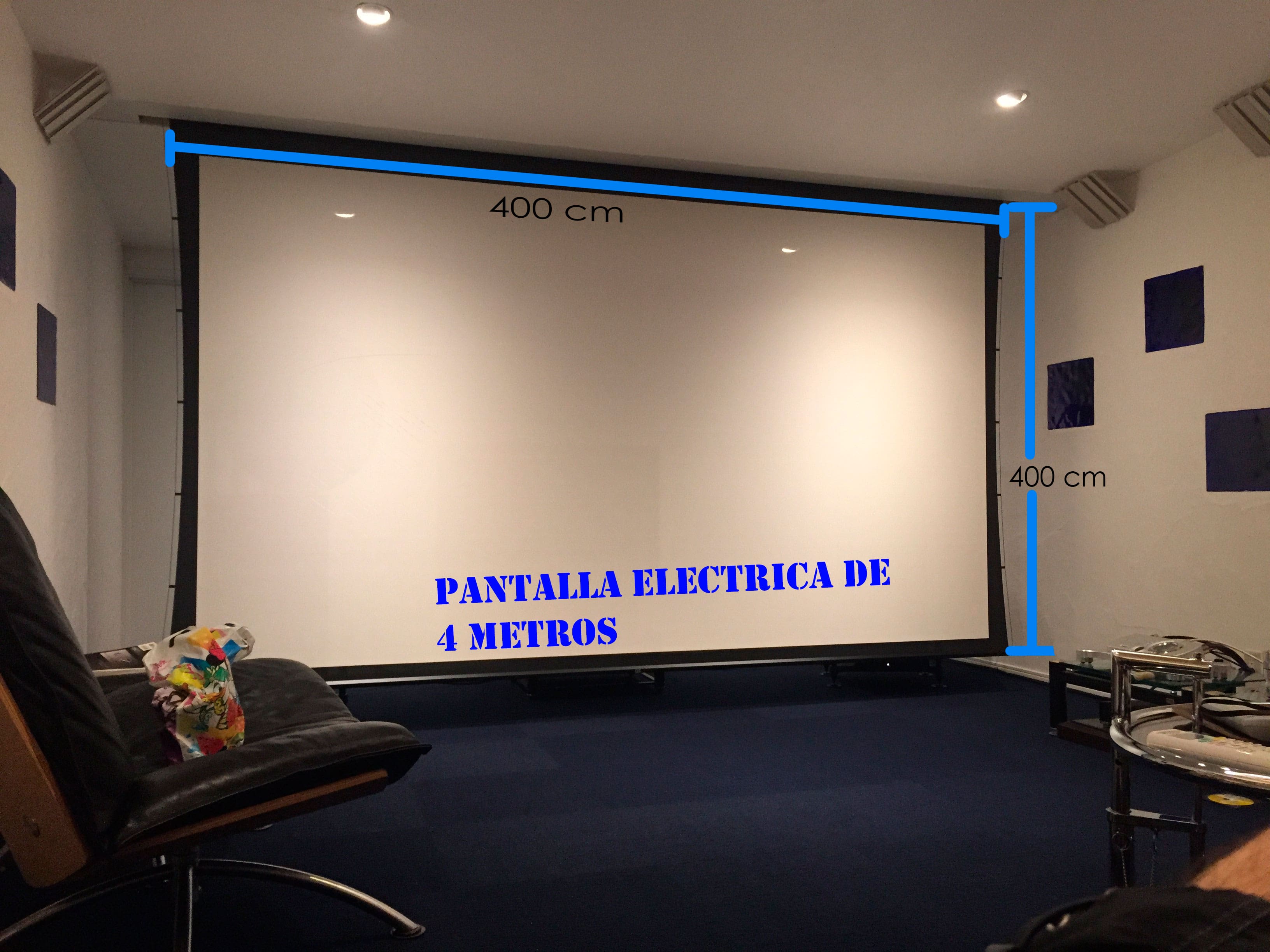 Vamos a realizar un simple ejercicio para averiguar el tamaño de una pantalla de 100 pulgadas en centímetros, no afecta si el Telón de proyección es manual, solo tenemos que tomar la medida de la parte inferior...