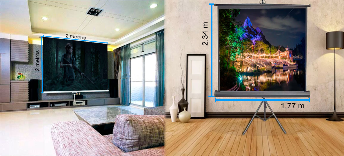 Una pantalla de video beam con una diagonal o área de proyección de 100 pulgadas es una medida ideal y práctica tanto para el hogar (si se desea instalar un teatro en casa).